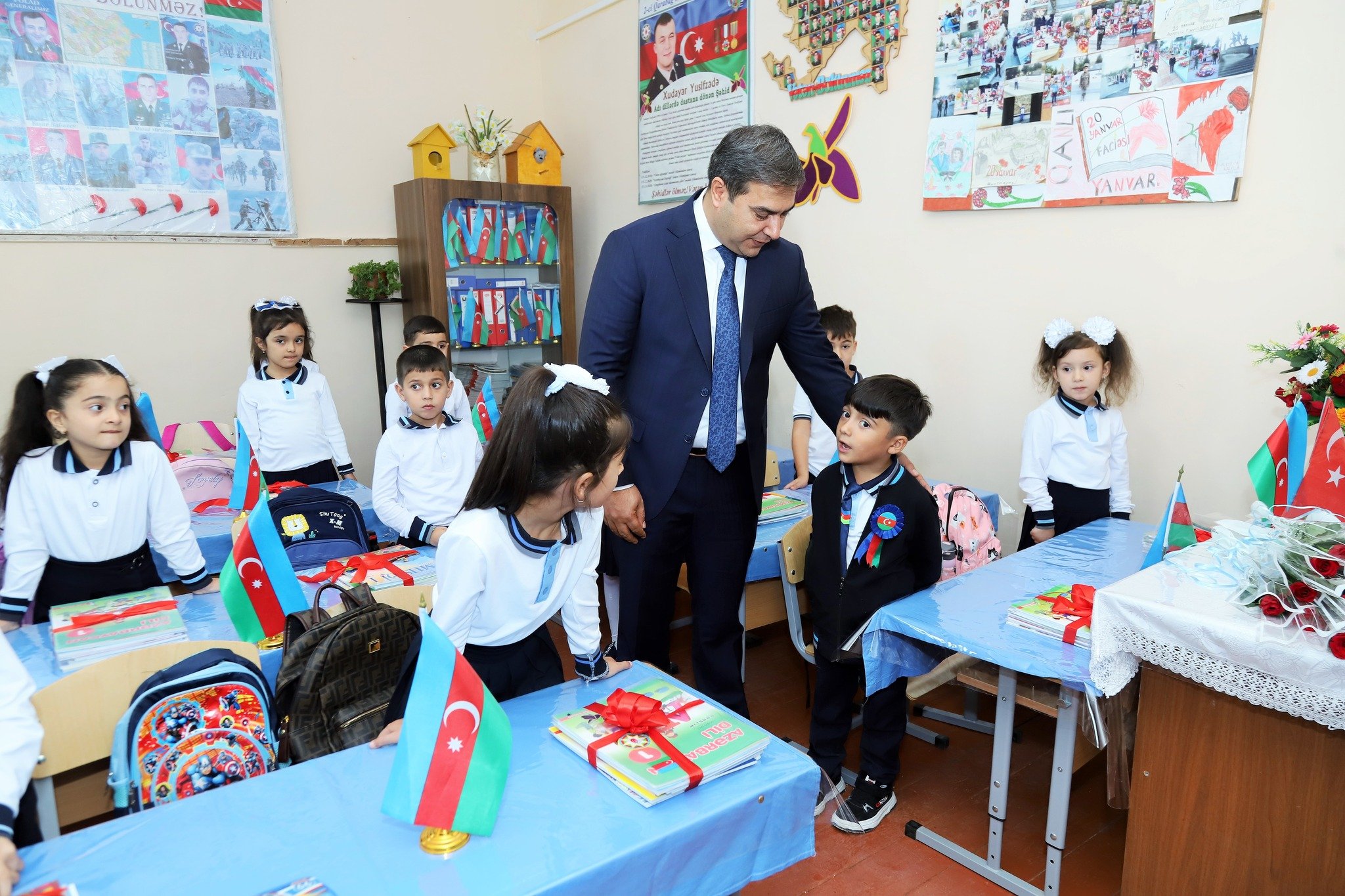 Tədbirin ikinci hissəsində idarə müdiri Elçin Kərimov və digər qonaqlar sinif otaqlarına baxış keçirmiş, şagirdlərin ilk dərs günü ilə bağlı təəssüratlarını öyrənmişlər.